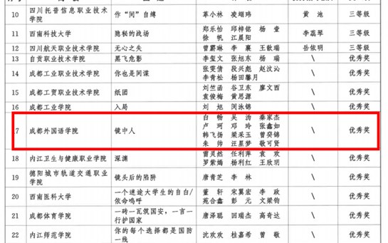 • 近日,四川省教育厅、四川省国安厅、共青团四川省委联合开展四川省高校学生国家安全知识暨宣传作品竞赛。中东欧语言学院学子在此次竞赛的宣传作品赛道中,凭借微电影作品《镜中人》荣获优秀奖,展现扎实的国家安全知识素养与优秀的创作能力。在本次四川省高校学生国家安全宣传作品竞赛中,我院2024级俄语1班学生白畅、卢珂、吴沩、秦家杰、...