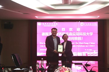 2025年10月21日上午,德国西萨克森茨维考应用技术大学项目负责人乔惠芳教授访问我校。我院党委书记杨卓、院长助理王雪松、德语专业师生代表在会议室(一)与乔教授热情交流。