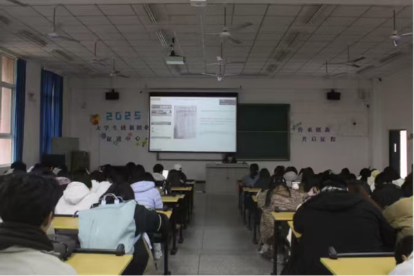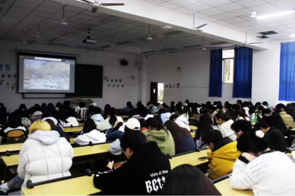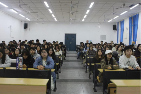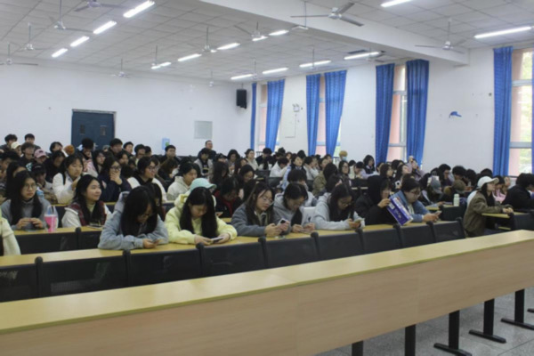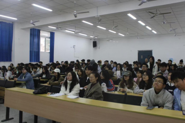 (图5:非通用语所有师生于二教阶梯教室A104听企业专家分享会)