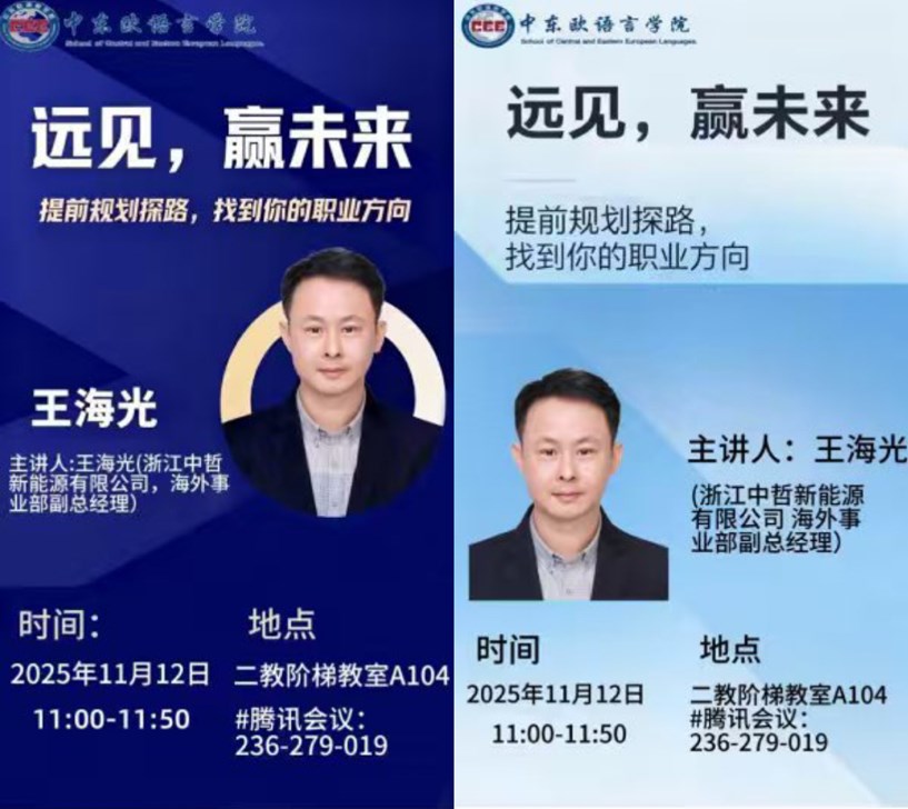 中东欧语言学院院长杨柳教授,中东欧语言学院学生发展中心主任李春阳老师,中东欧语言学院教研室主任何颖迪老师及各非通用语教师对王海光先生此次前来讲座表示了热烈欢迎,杨柳院长表示,邀请王海光先生来我院为非通用语学生开设讲座是我院的荣幸,王海光先生的此次企业专家讲座有利于进一步推进我院教学和企业的联动,加强学生学以致用的应用型思维,拓展学生国际视野。