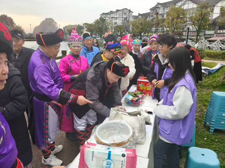 活动开始前,志愿者们准时到达活动现场,积极投入工作。志愿者们将活动物资搬运到活动场地,并布置活动场地,准备活动内容。活动开始后,志愿者积极投入到活动各板块中,为居民讲解活动规则。在活动间隙,志愿者与在场居民交流,了解其生活状况并给他们宣传各民族的习俗以及文化知识。最后,志愿者们协助居民们完成答题抽奖等活动,居民们与志愿者相互祝福,呈现出一副和谐友爱的画面。