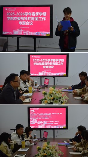 为进一步加强团组织建设,明确新学期工作方向,充分发挥学院党建带团建工作优势,凝聚青年力量,激发团组织活力,我院于3月19在第二教学区C201-1会议室召开党委研究共青团工作专题会议暨春季学期工作会。学院党委书记杨卓、团委书记杨鑫、学工系统老师及学生干部参加会议。