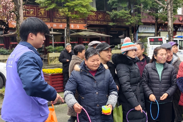 为关爱社区老人身心健康,普及中医养生知识,3月19日,我院志愿者团队在青城山景区泰安古镇协助开展中医主题志愿服务活动。