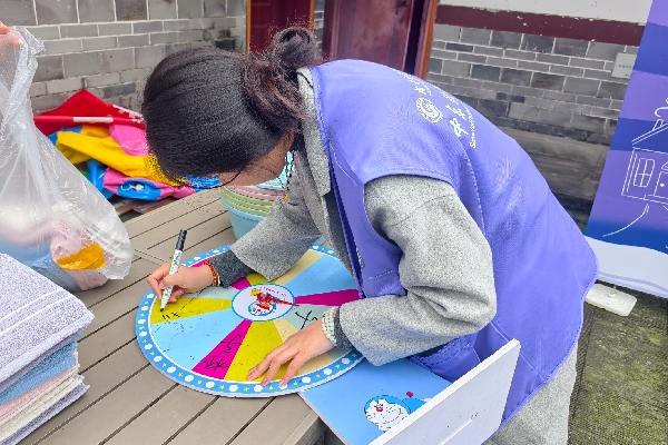 图为我院志愿者协助老人参与幸运转盘抽奖活动