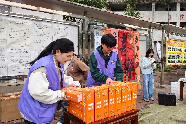 图为我院志愿者摆放伴手礼